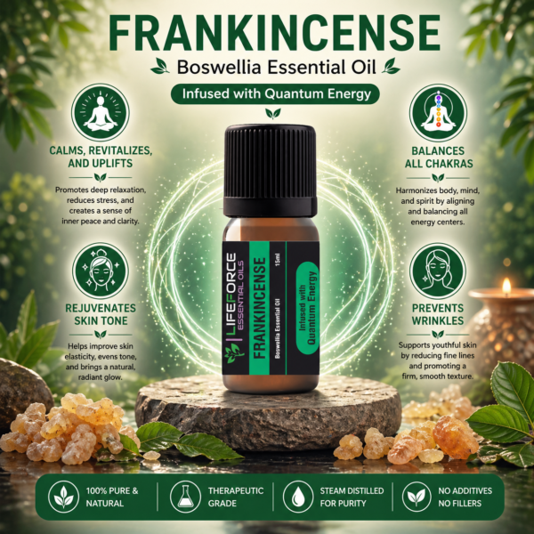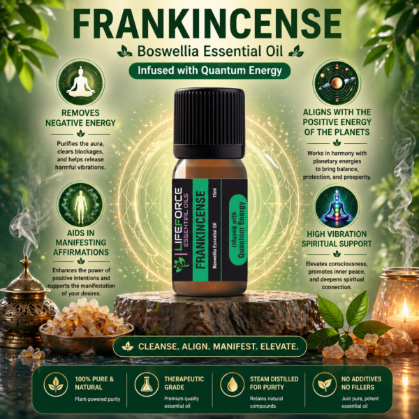 Frankincense Essential Oil is known as the “King of Essential Oils” because of its versatility. During the Middle Ages, Frankincense was one of the most valuable commodities in the world, worth more than its weight in gold. Due to its high vibration frequency, Frankincense has been used since ancient times in religious rituals and sacrifices to fulfill specific purposes. Frankincense essential oil supports the body’s natural self-healing power and promotes overall well-being.