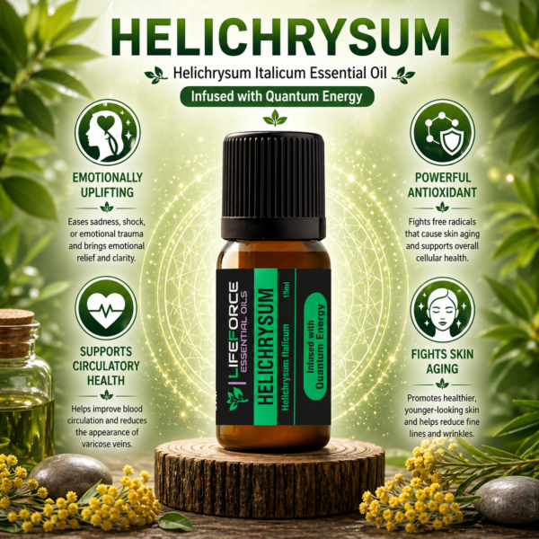 Often referred to as “Liquid Gold”, Helichrysum is one of the most revered and precious essential oils in the world. Infused with Quantum energy, it carries powerful regenerative, soothing, and emotionally healing properties. Known since ancient times for its ability to rejuvenate skin, support healing, and uplift the spirit, Helichrysum is a rare gift from nature — a symbol of resilience and inner strength.