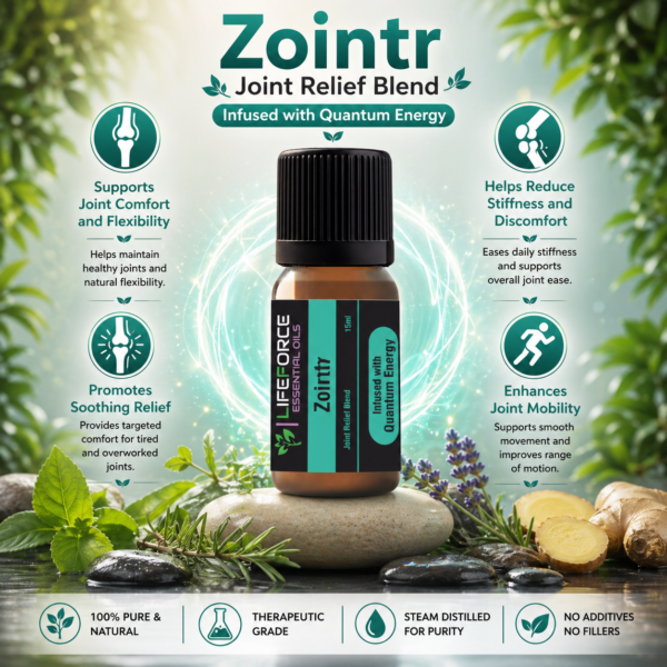 A powerful essential oil blend specially crafted to support joint comfort, mobility, and bone vitality.Infused with Quantum energy, it works in harmony with your body’s natural rhythms to ease stiffness and promote localized relief. Whether it’s knees, elbows, shoulders, or other joints — ZointR helps you move with ease and confidence.